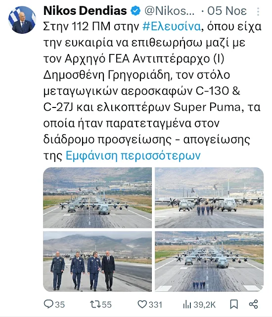 Η σχετική ανάρτηση του ΥΕΘΑ στο Χ είχε γίνει στις 5 Νοε. 2025…